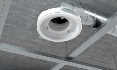 El difusor es una parte importante del techo del sistema de ventilación. El difusor ERGOVENT de yeso se instala en un techo de yeso, enlucido y pintado todo del mismo color que el techo. Solo quedará una ranura estética en forma de anillo para el flujo de aire en el techo. Queda genial en cualquier interior.