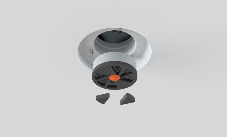Los apagadores de poliuretano se utilizan para regular el flujo de aire del difusor. Se incluyen con el difusor y se pueden insertar en el difusor en cualquier momento después de la instalación. El flujo de aire se equilibra cambiando el número de segmentos de apagadores extraíbles.